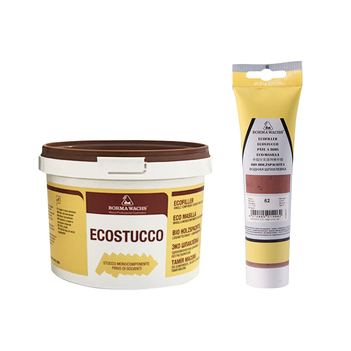 Idrostucco formulato e composto con materie prime di qualità, adatto su superfici murali e legno grezzo, privo di solventi e pronto all'impiego.