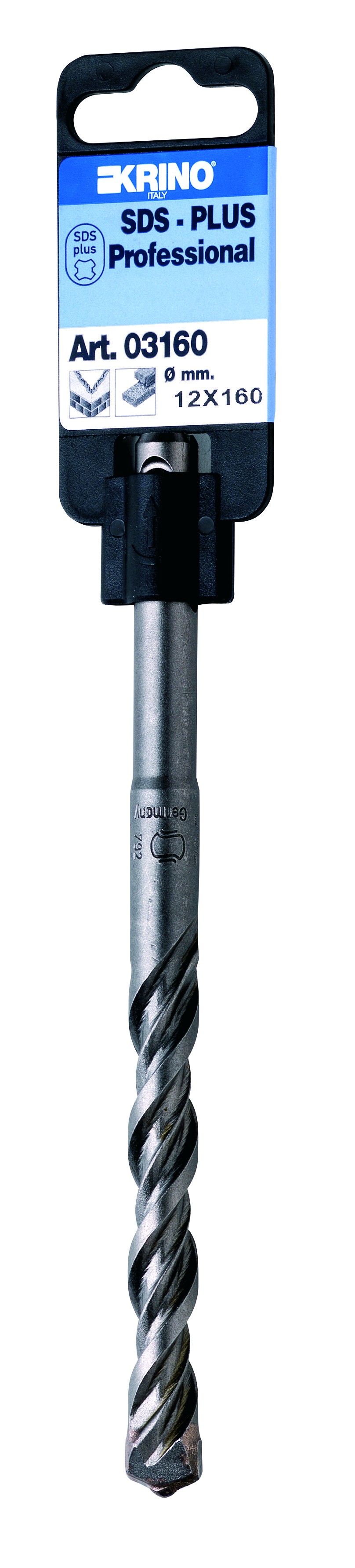 Punte per trapani a martello SDS-PLUS, qualità super professionale "K 4". Corpo a 4 spirali indipendenti per un avanzamento più veloce (+35%) ed un maggior scarico dei detriti. Corpo in acciaio legato con HRC 50÷55. Geometria della testa più snella e aggressiva per un'ottima trasmissione della potenza. Saldobrasatura a 1100°C in atmosfera di gas protettivo.