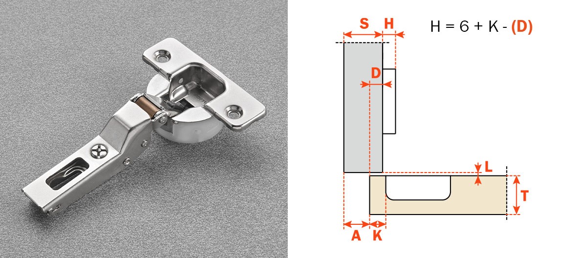 Cerniere con sistema decelerante integrato nella scatolina. Profondità della scatolina 15.5 mm. Apertura 94°.