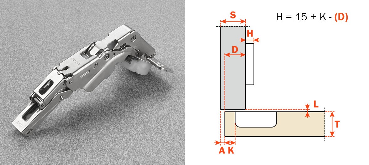 C2AKAE9 con grande angolo di apertura a ingombro ridotto Profondità della scatola in zama13.5mm, apertura 155° Silentia