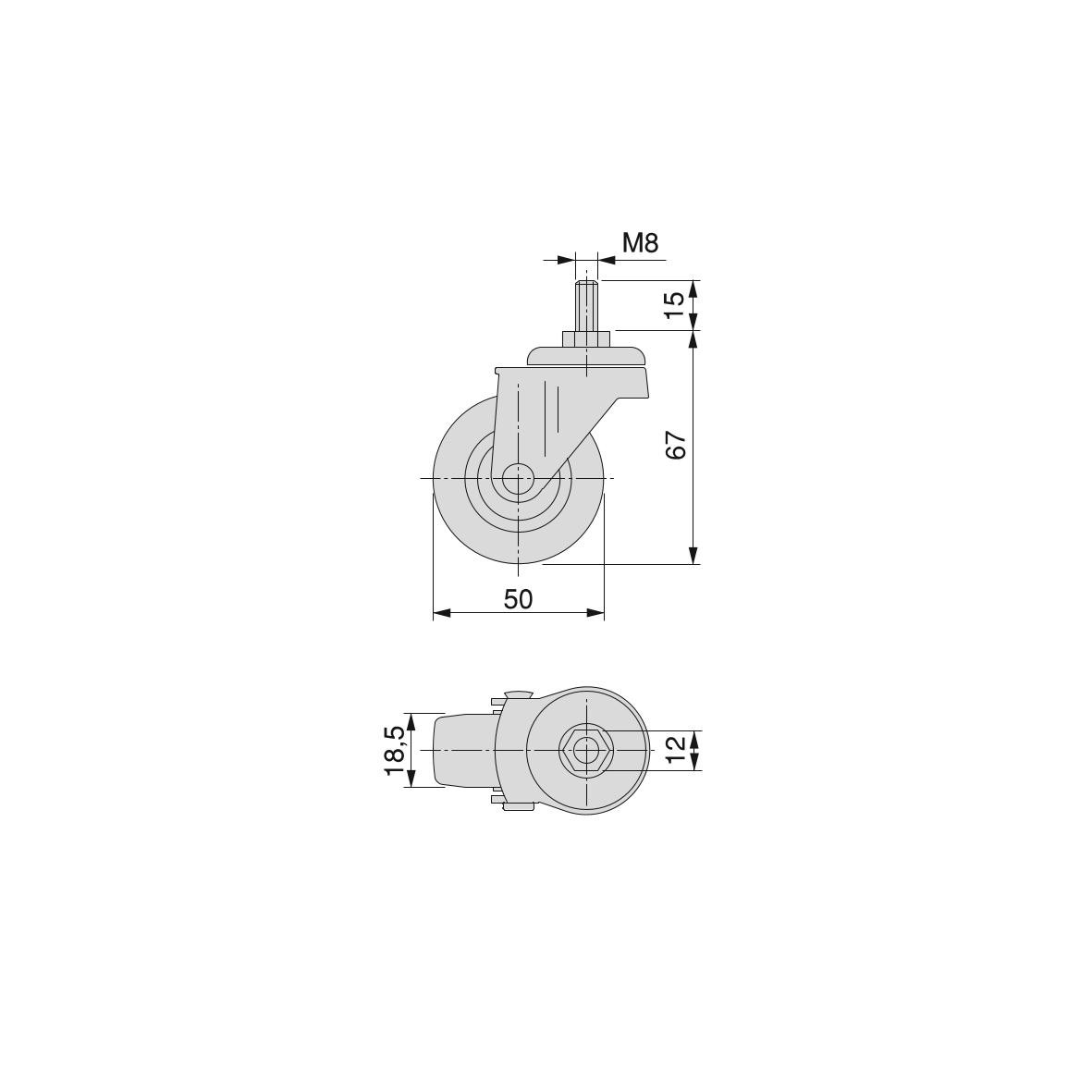- Perno metrico M8 x 15 mm per il montaggio al mobile.