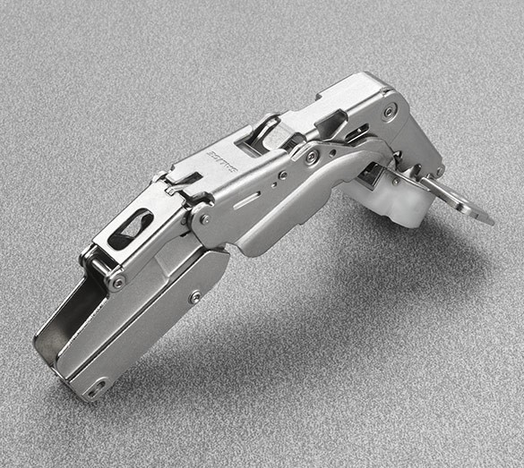 - Cerniera con grande angolo di apertura a ingombro ridotto.