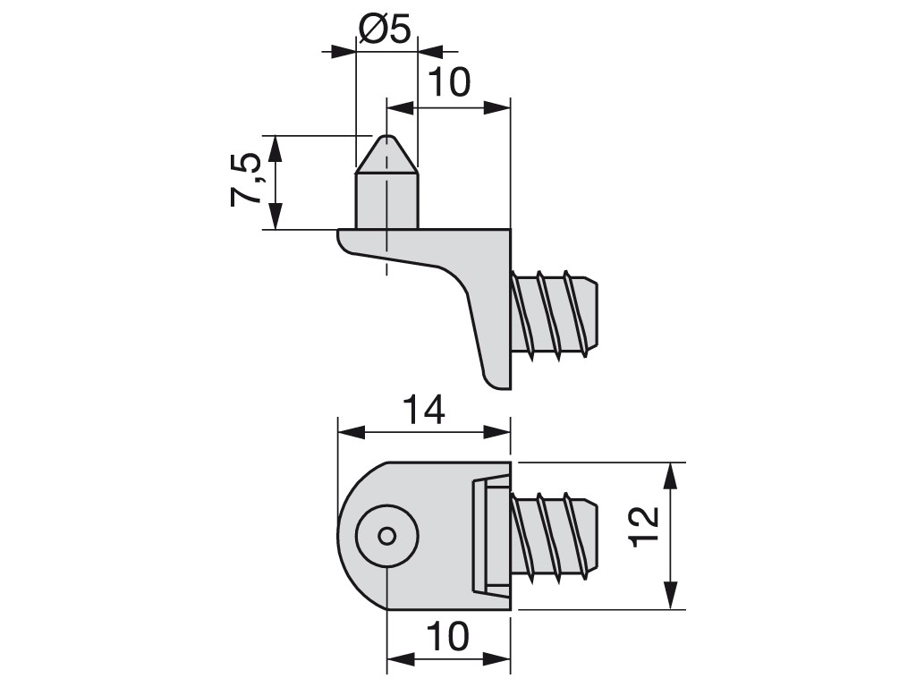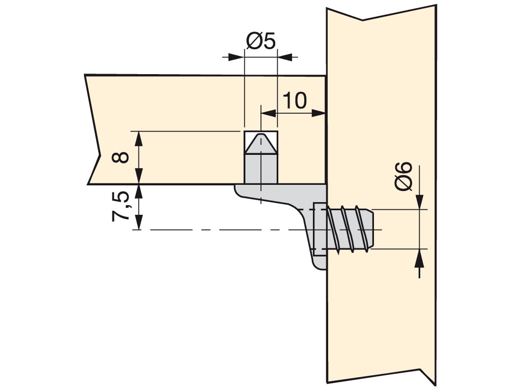 Il reggipiano in zama per mobili reggipiano ad angolo con 2 perni D5