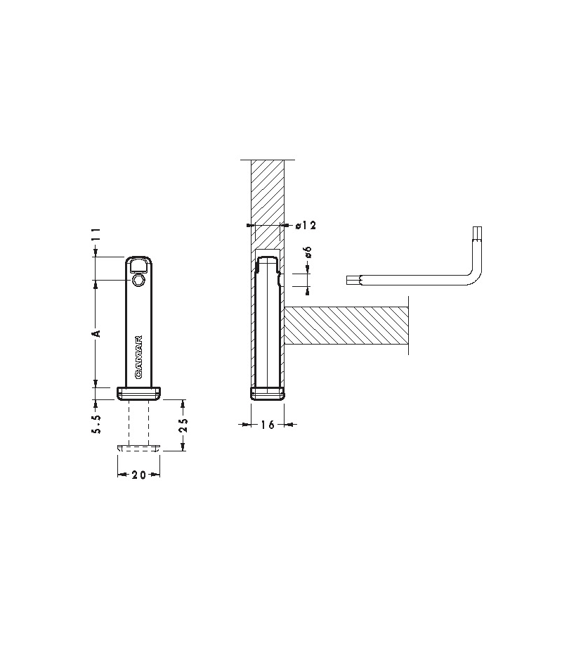 - Regolazione in altezza fino a 25 mm con chiave esagonale da 4