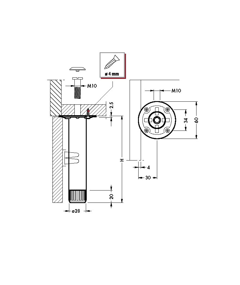 Piede cucina 323 Altezza 60mm