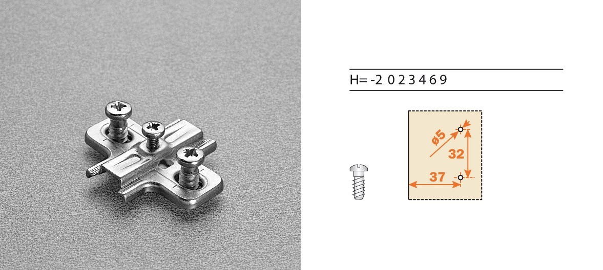 passo 37x32 - Regolazione verticale +/-2mm tramite asola