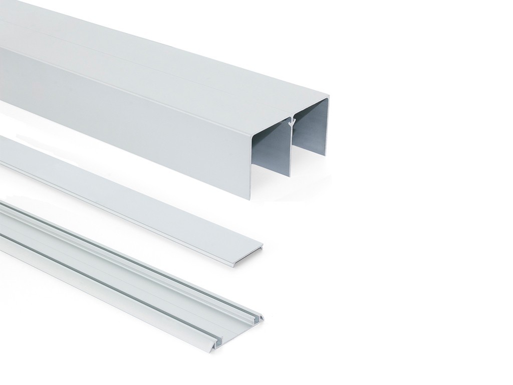Il binario superiore è idoneo per il sistema slowmotion e permette la regolazione in altezza di 10mm dell’anta. Venduti a coppia in barre da 2,35 e 3,9 metri