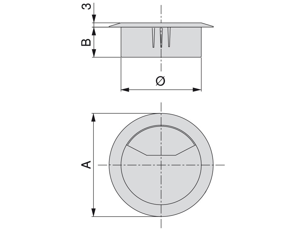 Bocchetta passacavi Ø 60 ad apertura regolabile.
