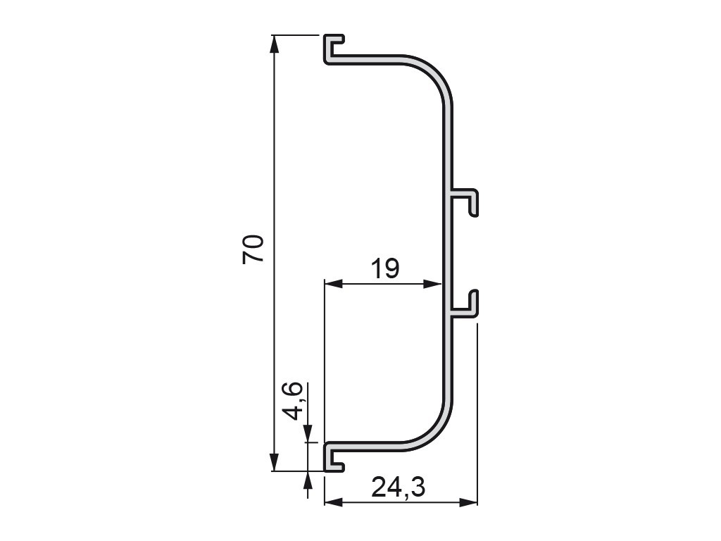 Sistema in profili di alluminio, per evitare di mettere le maniglie sui mobili della cucina. Questo tipo di sistema fa tendenza nei mobili da cucina poiché resta nascosto e permette di aprire e chiudere le ante e i cassetti senza sporgenze.