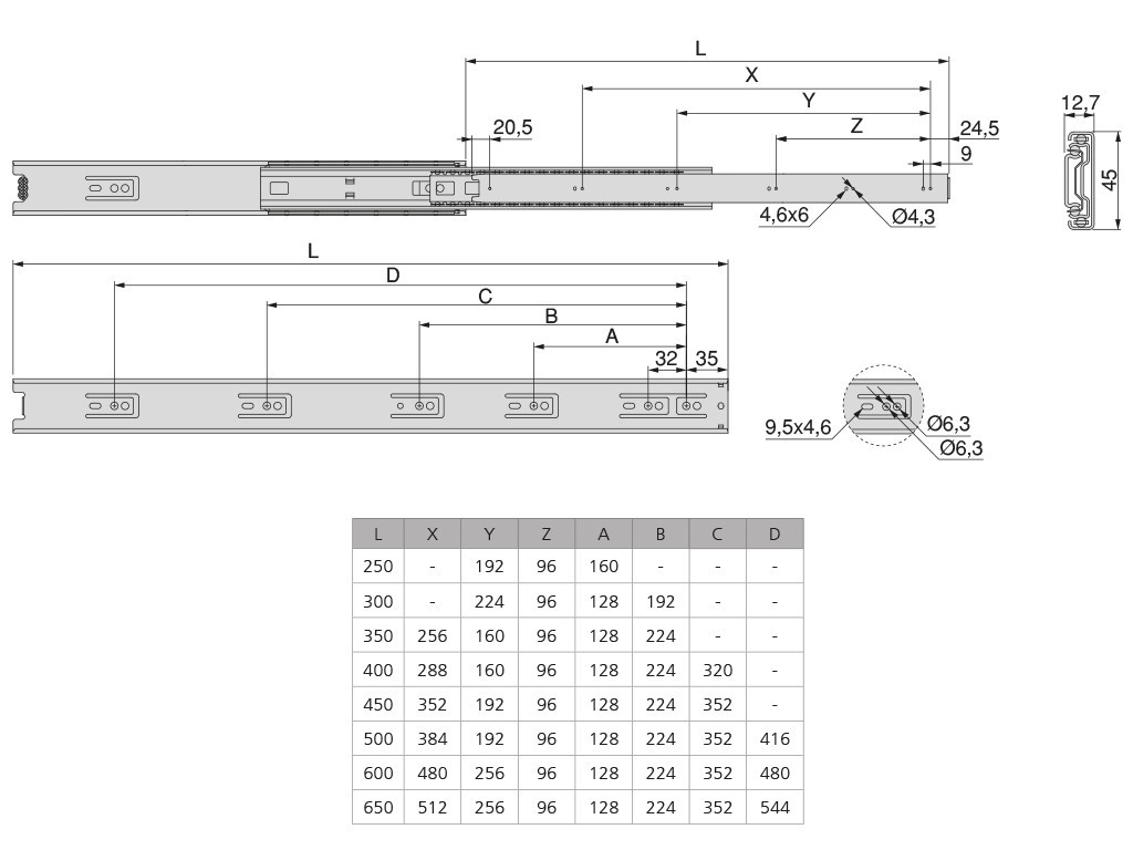 Guida a sfere da 45mm Vendute a coppia o scatole da 15