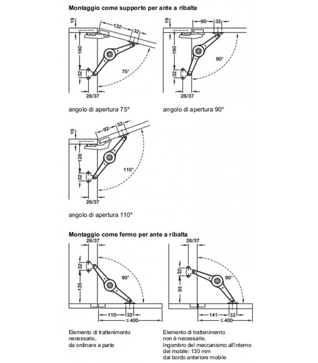 - Staffa fissaggio al fianco mobile con distanza dal bordo: 37 mm