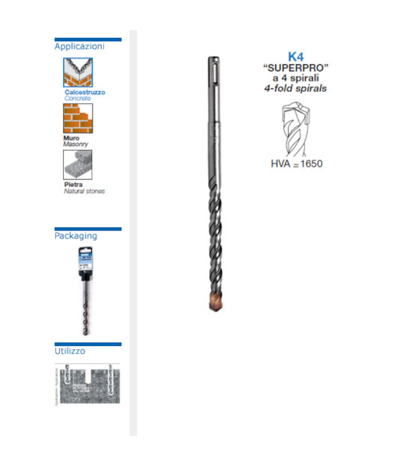 - Punte per trapani a martello SDS-PLUS, qualità super professionale “K 4”.