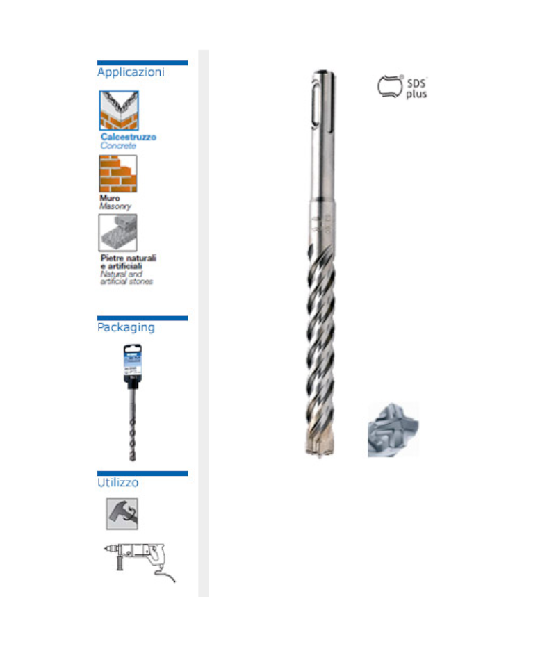 Placchetta in metallo duro monoblocco a 4 taglienti, resistenti alla forte percussione, corpo con scanalature a "L" ad alta evacuazione. Taglia il tondino del cemento armato e non si ferma mai.Caratteristiche tecniche