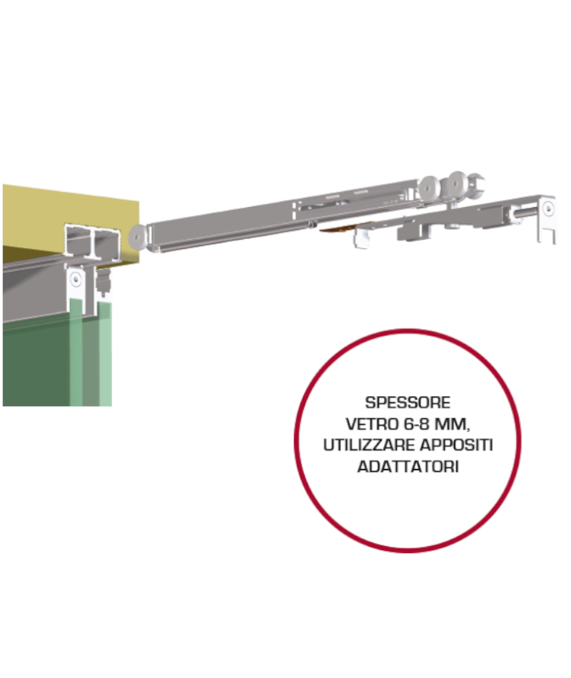 Sistema scorrevole per antine sospese in vetro e per ante sottili di spessore 6/8 mm