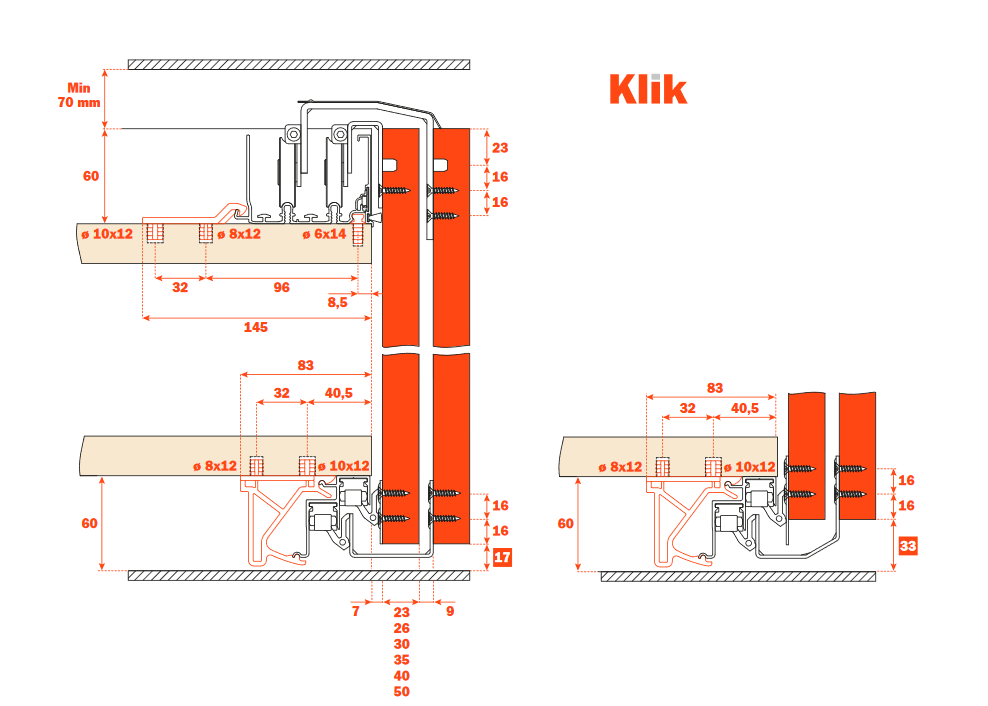 Tutti i componenti sono da ordinare separatamentePer ante dal peso massimo di 70 kg.
