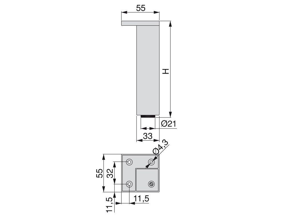 - Piedino in ABS supporta un peso di 40 kg di carico di compressione.