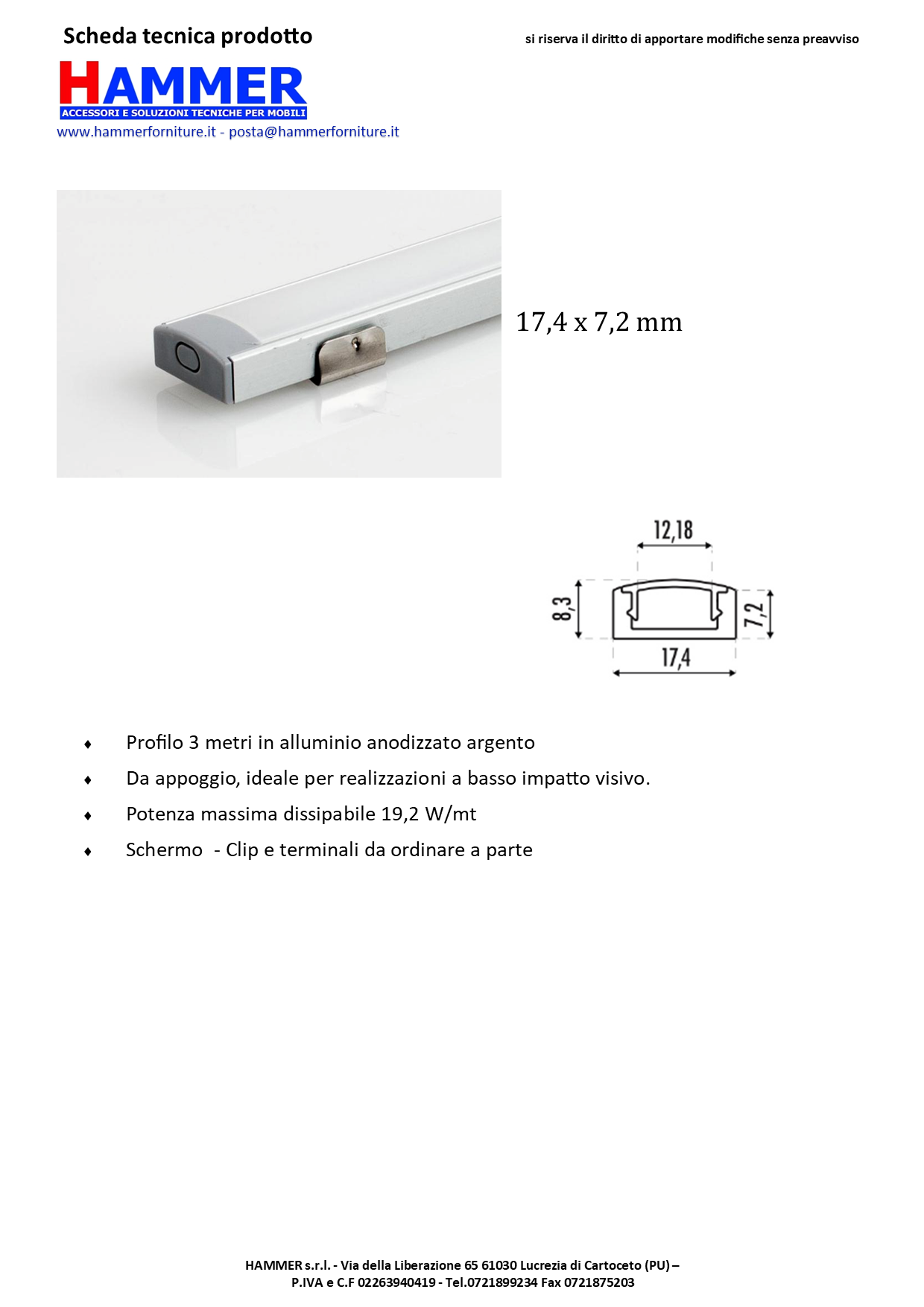 | Componenti del sistema | clip Profilo 1,5 metri Profilo 3 metri Terminali |
