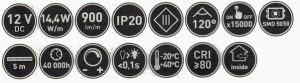 - Flusso luminoso [lm / m]: 850, 900, 1750